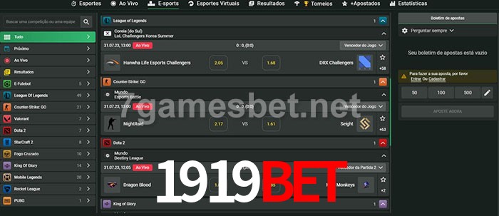 O 1919Bet oferece uma grande seleção de opções de apostas em e-sports com probabilidades competitivas